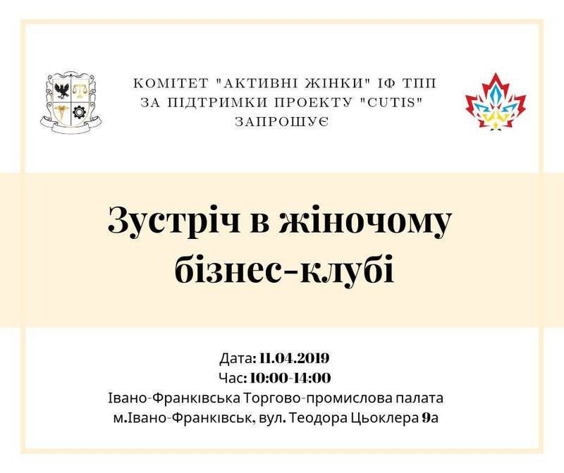 Комітет «Активні Жінки» ІФ ТПП в співпраці з канадсько-українським проектом СUTIS проводять «Зустріч в жіночому бізнес-клубі».
