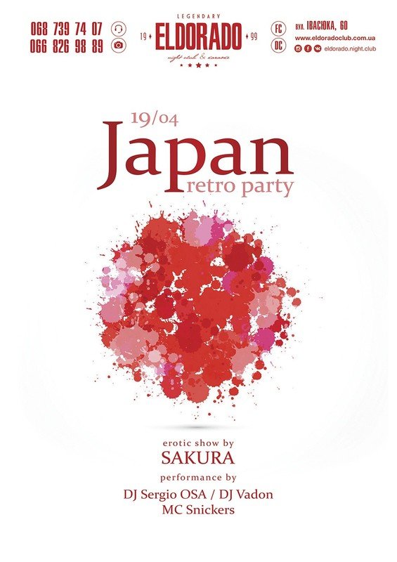 Найкращі ретро хіти, запальна шоу програма та смачні вишукані напої. Шалений відпочинок вже цієї п'ятниці! Erotic show by Sakura, performance by Dj Sergio Osa, Dj Vadon, Mc Snickers.
