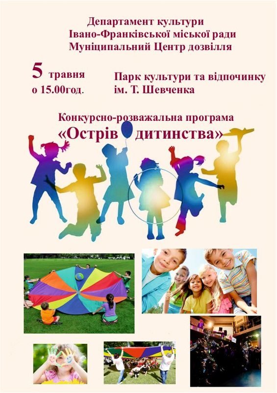 05.05.2019 року о 15.00 год. відбудеться конкурсно-розважальна програма для дітей на літній естраді міського парку культури та відпочинку ім.Т.Г.Шевченка