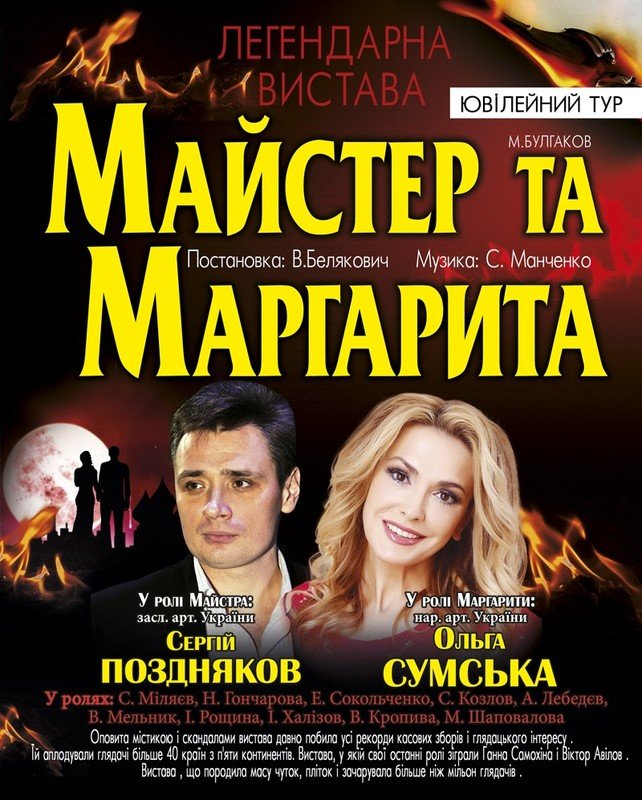 ОМУ ВАРТО ПІТИ НА СПЕКТАКЛЬ МАЙСТЕР І МАРГАРИТА? 1. Побачити класику наживо 2. Зоряний акторський склад 3. Неймовірні декорації До роману «Майстер і Маргарита» можна ставитися по-різному: прочитати запоєм, замислюючись над смисловим навантаженням окремих епізодів, а можна просто порахувати його фантастикою.