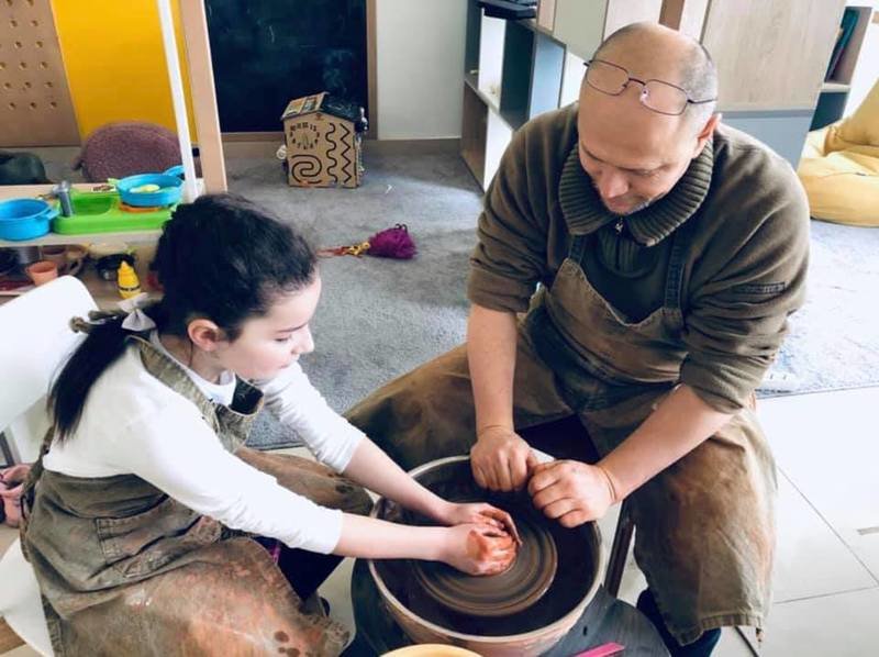 Ми завжди шукаємо нові цікаві активності для наших діток, щоб вихідні дні провести з користю! Тому обрали для Вас цікавий майстер-клас по виготовленою виробів з глини спільно з Школою кераміки. На дітей чекає робота з гончарним кругом, виготовлення глиняних фігурок та смачні тістечка!