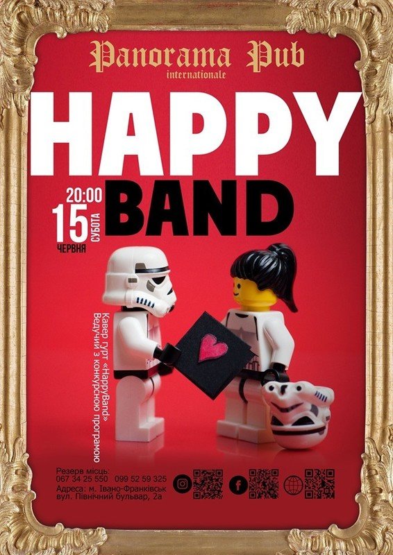 Виступ кавер-гурту та ведучий з конкурсною програмою. Бронювання столиків за тел.: +38 (067) 342-55-50