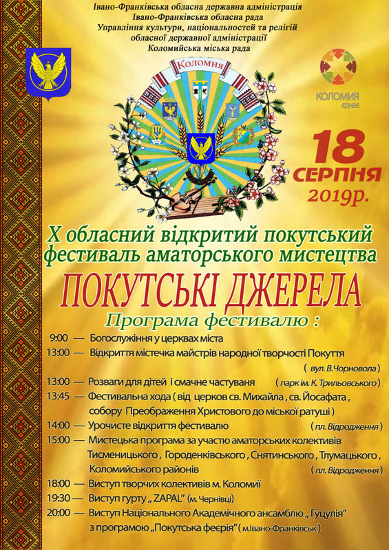 До Покутського регіону входять шість районів: Городенківський, Снятинський, Тлумацький, Тисменицький, Коломийський і Коломия. Оскільки Коломию вважають столицею Покуття, ювілейний фестиваль відбудеться саме тут, пишуть Дзеркало медіа.