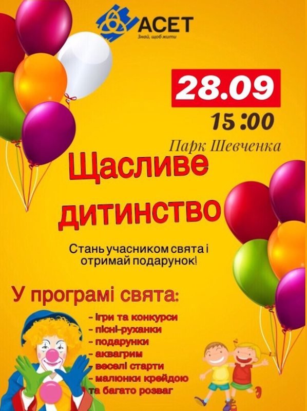 Запрошуємо приєднатися до дитячого свята «Щасливе Дитнство» і весело провести час разом з вашими дітками.