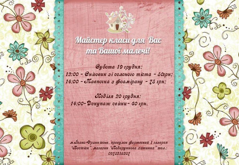 Запрошуємо на майстер класи від крамниці подарунків "Подарункова хатинка".