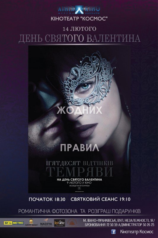Запрошуємо 14 лютого відвідати святковий сеанс епічної історії кохання "П'ятдесят відтінків темряви".