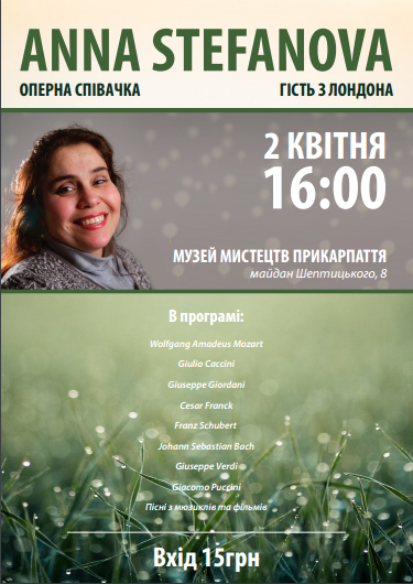 Вперше в Івано-Франківську! Сольний концерт оперної співачки Анни Стефанової з м. Лондон!