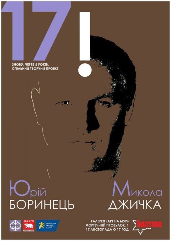 "17", знову через п'ять років, спільний творчий проект митців Юрія Боринця та Миколи Джички. На виставці будуть представлені роботи двох художників, створені за 2017 рік.