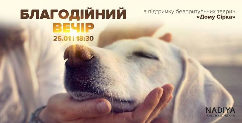 25 січня у ресторані «Надія» відбудеться благодійний вечір в підтримку безпритульних тварин метою якого є збір коштів для БО «Дім Сірка» на придбання машини УАЗ.