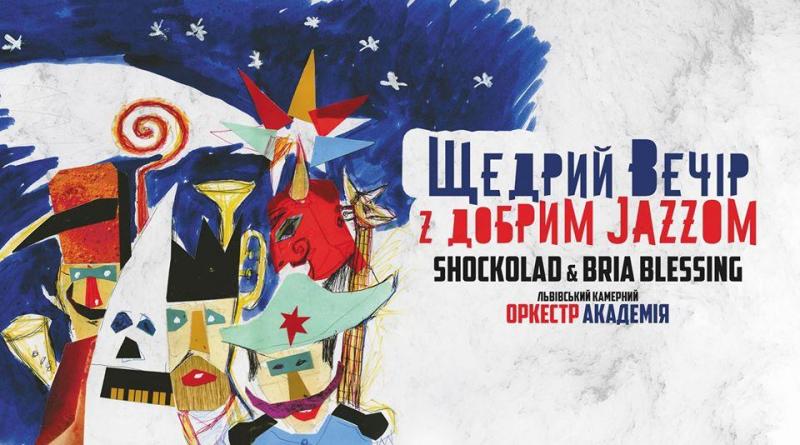 Різдво дарує відчуття чистоти та єдності, відчуття домашнього затишку та дитинства. Цю атмосферу та настрій джаз-бенд Shockolad та Bria Blessing / Брія Блессінг разом з Львівський камерний оркестр "Академія" LVIV CHAMBER ORCHESTRA подарують слухачам на концерті "Щедрий Вечір з добрим jazzом". Українські та американські колядки в джазових аранжуваннях. Неперевершена святкова музична атмосфера різдвяного джазового настрою. ShockolaD – це проект, що оснований на творчому тандемі відомих українських музикантів – Ігоря Гнидина та Анастасії Літвінюк, які є його засновниками та ініціаторами.Це один з найуспішніших українських проектів, що працюють у жанрі world music. Брія Блессінг, народилася в Техасі, американська співачка, музикант і автор пісень. Проживає у Львові. Її музика відображає її любов до Бога, життя і любові, яку вона пристрастно виражає через різні музичні жанри, що включають в себе поп, джаз, кантрі і рок. Після участі у четвертому сезоні українського вокального конкурсу "Голос Країни", Брія виступала по всій Україні, у Сполучених Штатах, Канаді, Данії, Норвегії і в Польщі. Також вона активно задіяна в багатьох благодійних проектах. Квитки можна придбати в касі Драмтеатру, онлайн та за адресами:Dazzle - вулиця Незалежності, 34Люмʼєр - вулиця Грушевського, 3