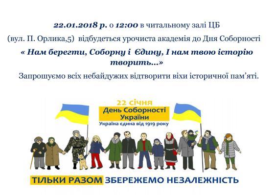 УРОЧИСТА АКАДЕМІЯ ДО ДНЯ СОБОРНОСТІ "НАМ БЕРЕГТИ, СОБОРНУ І ЄДИНУ, І НАМ ТВОЮ ІСТОРІЮ ТВОРИТЬ..."