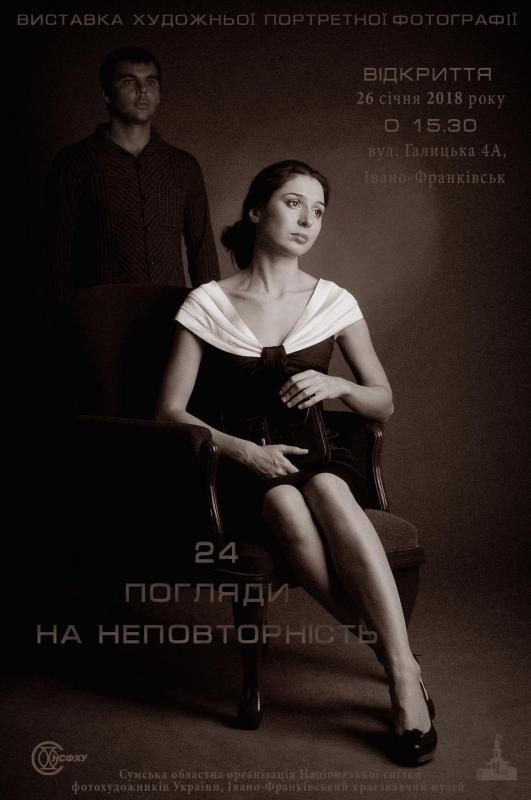 Ця виставка - творча бесіда з митцями фотографії Івано-Франківська.Влітку 2017 року сумський фотопленер "Перекотиполе 2017" розпочинався виставкою фотохудожників Прикарпаття. Домовленістю було обговорено наявність безумовного творчого візиту у відповідьЗ часів античності філософи відображали у своїх уявленнях людину, як "мікрокосм". Тобто, розуміли її як Всесвіт в мініатюрі. Це всесвіти з таємницями різноманіття та особливостями поведінки, притаманними тільки цим характерам.24 погляди на суть таких особистостей - це 24 сумських авторів, які взяли участь у виставці. Ви побачите роботи створені в різні роки, як молодими фотохудожниками Сумщини, так і визнаними майстрами. Роботи виконані в різних манерах, які відображають внутрішні вподобання авторів. Це ті переваги відображень, які дозволяють найбільше, на їх погляд, зрозуміти характер та внутрішній світ особистостей, що зацікавили фотографів.Як відомо, двох однакових людей не знайдеш. Тому, митця завжди приваблює тема індивідуальності особи, відповідність зовнішнього внутрішньому та навпаки. Авторське бачення цих гармоній допомагає показати людину, як творця унікального життєвого шляху, носія багатогранної неповторності. Автори, що взяли участь у виставці (абетка):Алмазова Олена, Бершов Валерій, Бугаєнко Сергій, Виноградова Наталія, Говорухіна Наталія, Горбаченко Олександр, Дериземля Анатолій, Дядюра Валерій, Зубченко Дмитро, Кармазіна Наталія, Ковальова Наталія, Колесніков Сергій, Краснянський Сергій, Курта Аркадій, Литвиненко Аліна, Малюк Сергій, Миколенко Олександр, Ройченко Ігор, Сагалаєв Олександр, Тимошенко Вікторія, Хвостик Володимир, Чепульський Сергій, Чичерін Михайло, Шипіцин Євген