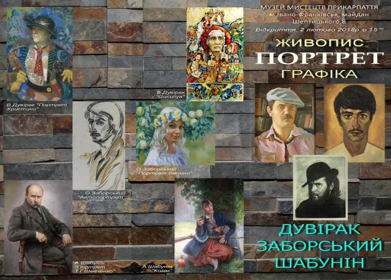 2 лютого о 15.00 - відкриття виставки творів Валерія Дувірака, Ореста Заборського і Андрія Шабуніна "Портрет. Живопис, графіка"