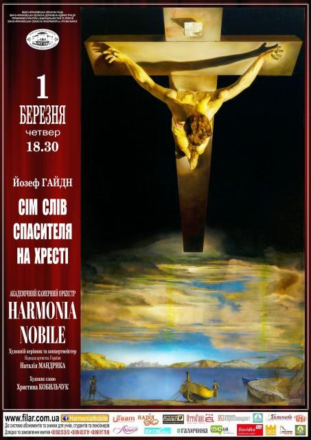 Академічний камерний оркестр "Harmonia Nobile".Йозеф Гайдн "Сім слів Спасителя на хресті".Твір змальовує останні хвилини земного життя Ісуса Христа і виконується тільки в часі Великого Посту.Художній керівник та концертмейстер – Наталія Мандрика.Художнє слово – Христина Кобильчук.