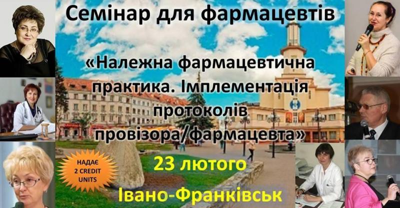 Група компаній "МедЕксперт", організовує цикл виїзних навчально-практичних семінарів "Належна фармацевтична практика. Імплементація протоколів провізора/фармацевта". Запрошуємо провізорів та фармацевтів відвідати семінар. Вперше в Україні, участники матимуть змогу отримати міжнародний сертифікат, який враховуєтья при атестації в Європі, Канаді та США і надає Credit_Unit.Виїзний цикл семінарів входить до Програми підвищення кваліфікації співробітників фармацевтичної галузі.Сертифікати, видані по закінченню семінарів, враховуються при атестації/переатестації для підтвердження кваліфікаційної категорії (2 бали). Лекції читатимуть: : Зайченко Анна Володимирівна - доктор мед. наук, професор, зав. кафедрою фармакології Національного медичного університету ім. Богомольця О.О.Бездітко Наталія Володимирівна - доктор мед. наук, професор, зав. кафедрою фармакоекономіки НФаУ.Бодня Катерина Ігорівна - доктор мед. наук, професор, зав. кафедри медичної паразітології та тропічних хвороб ХМАПО, головний паразитолог МОЗ України, заслужений діяч науки и техніки України. Головач Ірина Юріївна - доктор мед. наук, професор, зав. відділенням ревматології, нефрологи та внутрішньої патології Клінічної лікарні "Феофанія" ДУС.Мамчур Віталій Йосипович, доктор мед. наук, професор, зав. кафедри фармакологіїта клінічної фармакології ДЗ "ДМА МОЗ України".Шеремета Лідія Миколаївна - доктор мед. наук, професор, завідувач кафедри фармакології Івано- Франківського національного медичного університету, заступник голови комісії.