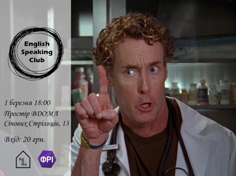 Івано-Франківська ФРІ знову організовує "English Speaking Club". Темою для обговорення буде один з епізодів серіалу "Scrubs" (Клініка). Перегляд буде з англійськими субтитрами та поясненням всіх ідіом та фраз, які так часто не дають нам до кінця зрозуміти текст англійських фільмів та серіалів.