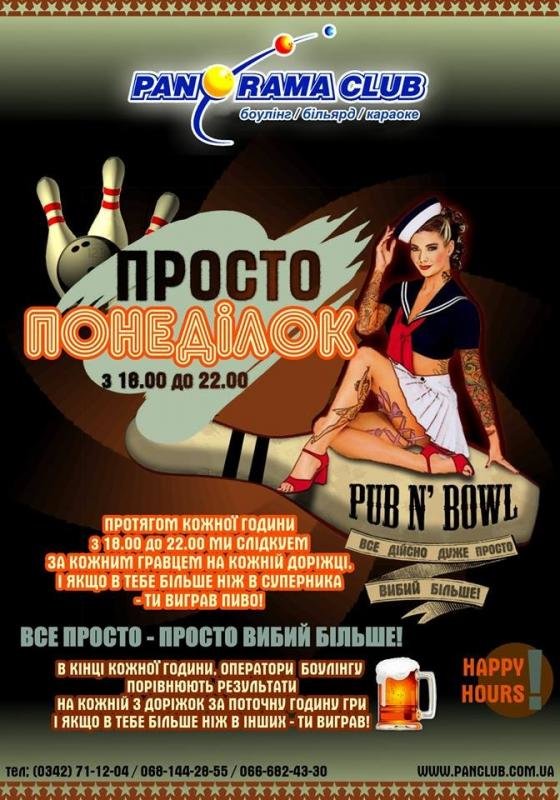 Щопонеділка на доріжках боулінгу "Панорама-Клуб" діє акція.