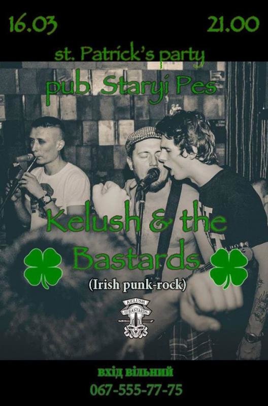 З нагоди святкування уiкенду Св. Патріка, Kelush & The Bastards 16 березня буде робити угар, а також пити та співати "the whiskey and the beer" в Старому Псi!