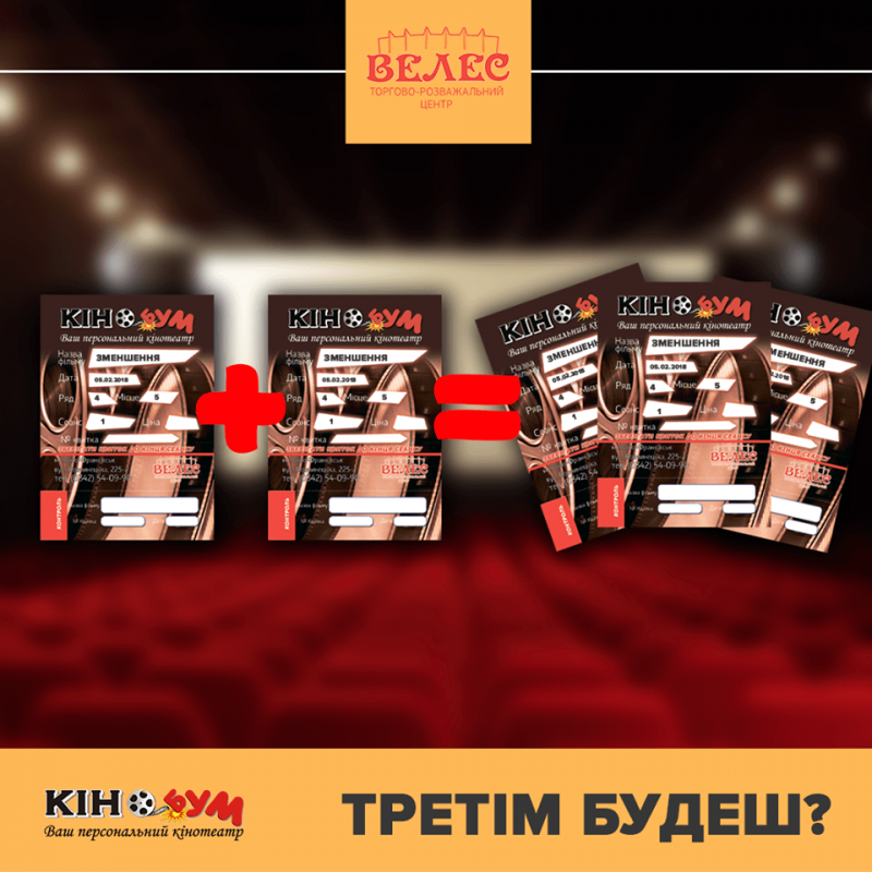 Купуйте два квитки на останній вечірній сеанс та отримуйте третій у подарунок.