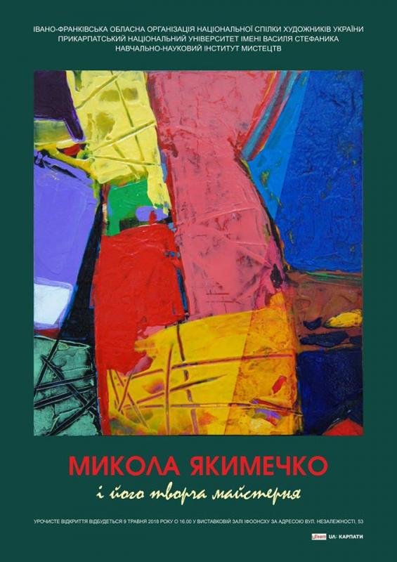 Буде представлено ряд підготовчих картонів в натуральну величину до композицій, виконаних в техніці жовткової темпери, акрилу, воскової емульсії, холодної енкаустики, багатошарового малярства з поліваріантністю підмальовків" - Микола Якимечко.