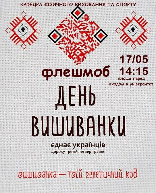 Запрошуємо до участі у флешмобі "День вишиванки єднає українців", який відбудеться 17 травня на площі перед входом в ІФНТУНГ!