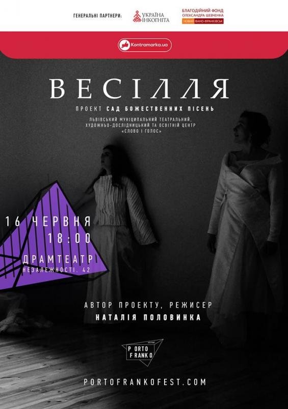 ВЕСІЛЛЯ— перша вистава проекту“САД Божественних пісень”, збудована на традиційних весільних піснях з цілої України.