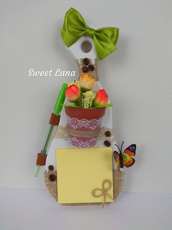 Ми будемо декорувати дуже симпатичну дощечку дуже практичними речами: це буде записник для найкращих рецептів, завжди поряд ручка, щоб не губилася і, звісно ж, квіти!