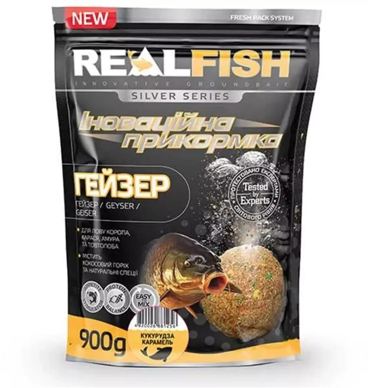 Прикормка Real Fish, как и вся продукция бренда, создана с учётом предпочтений разных видов рыб и особенностей водоёмов. Компания использует высококачественные ингредиенты, что делает прикормку привлекательной и стойкой по аромату.