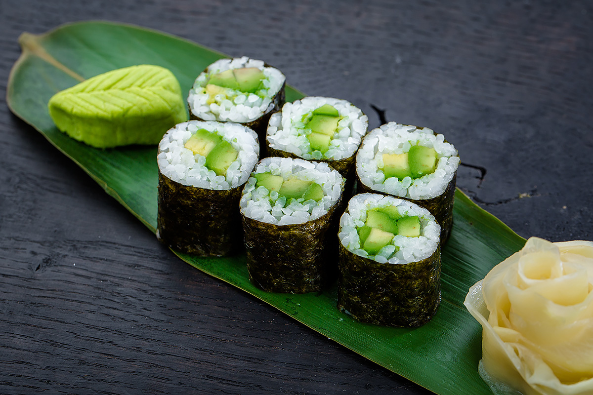 І тут японська кухня виявилась напрочуд гнучкою. Базові складові, такі як рис і норі підходять усім. А все інше можна скласти на власний смак. Хочеш авокадо, манго, тофу чи гриби? Будь ласка.