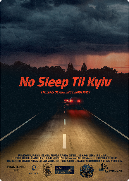 У центрі фільму — історії добровольців, які залишили буденне життя, аби займатися доставкою гуманітарної допомоги та техніки для військових на передову. Назва «No Sleep Til Kyiv» звучить як обіцянка й символ непохитності, адже в кожній історії відчувається ціна людської відданості тоді, коли йдеться про порятунок інших.