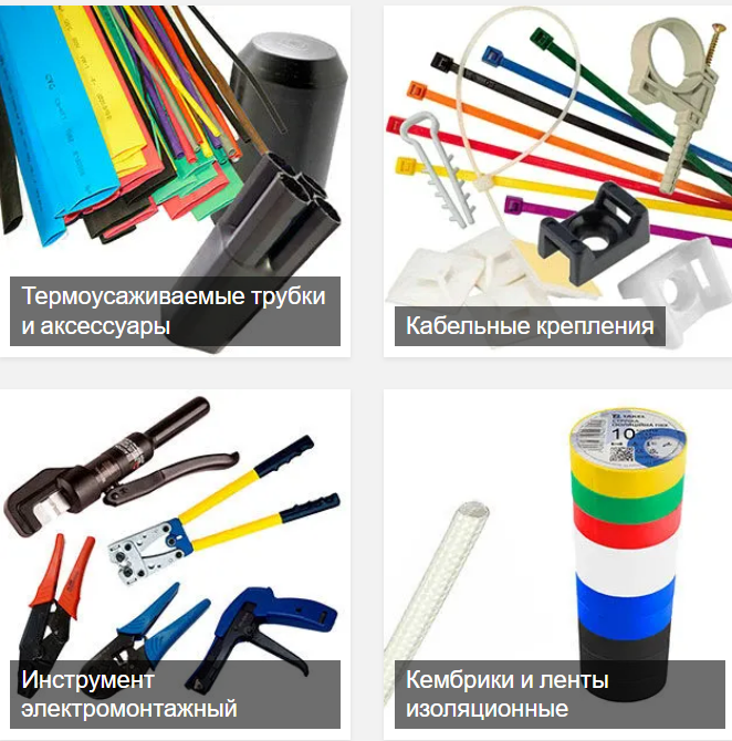 Ассортимент включает в себя кабельно-проводниковую продукцию, термоусадочные материалы, клеммники, изоляцию, соединительные муфты, кнопки и переключатели, а также инструменты для снятия изоляции и обжима наконечников. Каждое изделие подобрано с учетом практического применения – от бытовых работ до промышленного электромонтажа. Это дает возможность уверенно реализовывать проекты любой сложности, обеспечивая надежность и безопасность эксплуатации.
