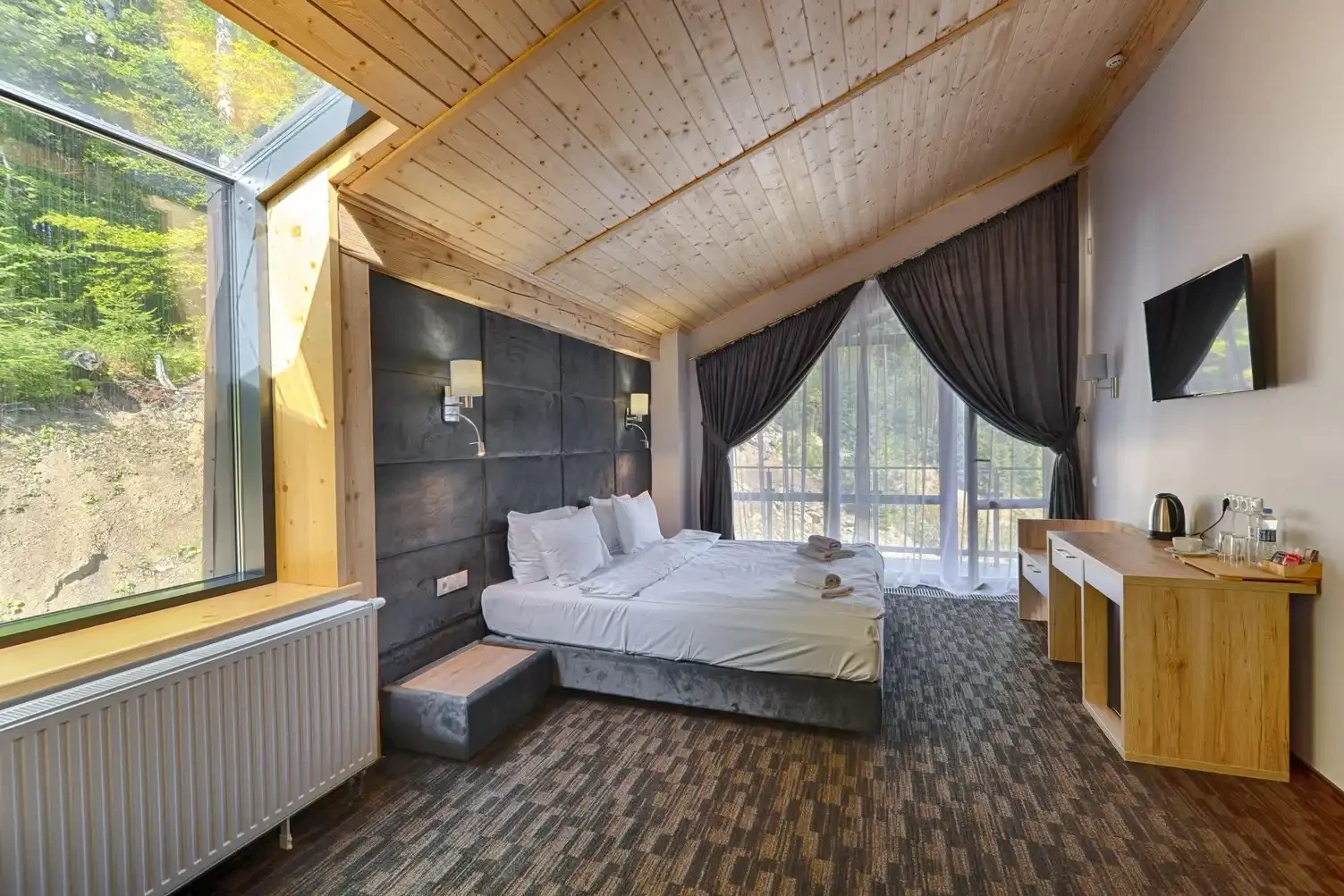 Karpatski створений для тих, хто цінує сучасний дизайн, природну гармонію та продуману інфраструктуру. З вікон номерів відкриваються краєвиди на карпатські схили, а спокійна атмосфера дозволяє відчути себе далеко від міської метушні. Готель пропонує: