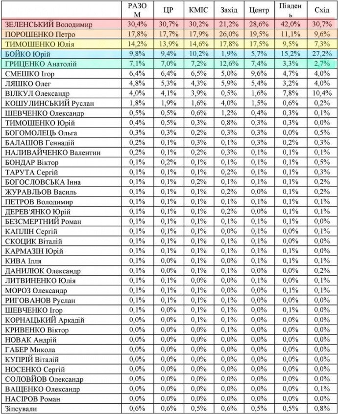 ПОВНА ІНФОГРАФІКА: Зеленського найбільше підтримує Південь, а Порошенка – Захід