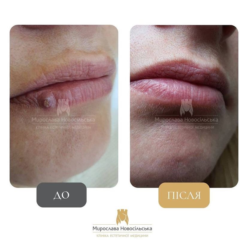 лазерне видалення це - мінімальна травматичність, адже лазер діє точково; швидке відновлення, на місці видалення утворюється невелика кірочка яка відпадає через 7-14 днів; косметичний ефект - мінімальний ризик утворення рубця, тому цей метод найчастіше обирають для видалення родимок на обличчі; лазером видаляють тільки доброякісні родимки, якщо є підозра на злоякісну то зразок потрібно відправити на гістологію, а для цього підійде хірургічне видалення.