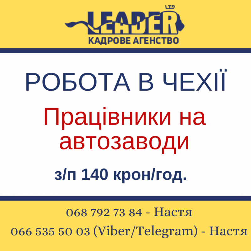 Кадрове агентство «ЛІДЕР-ЛТД» запрошує працівників на виробництво автодеталей в м. Млада-Болеслав.